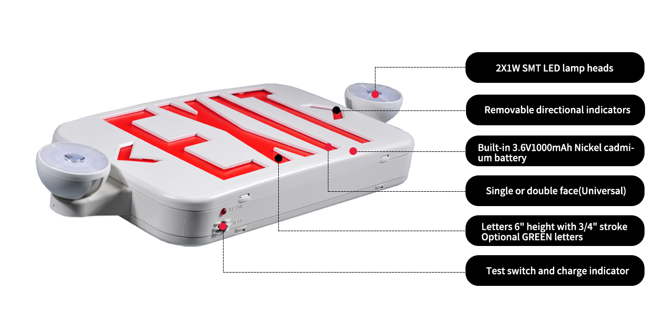 LED 헤드가있는 Bi-Color LED 콤보 비상구 사인 *주입-홀드 열가소성 ABS 하우징, UL 94V-0 불꽃 등급. *몇 분 안에 혁신적이고 쉬운 설치 ...