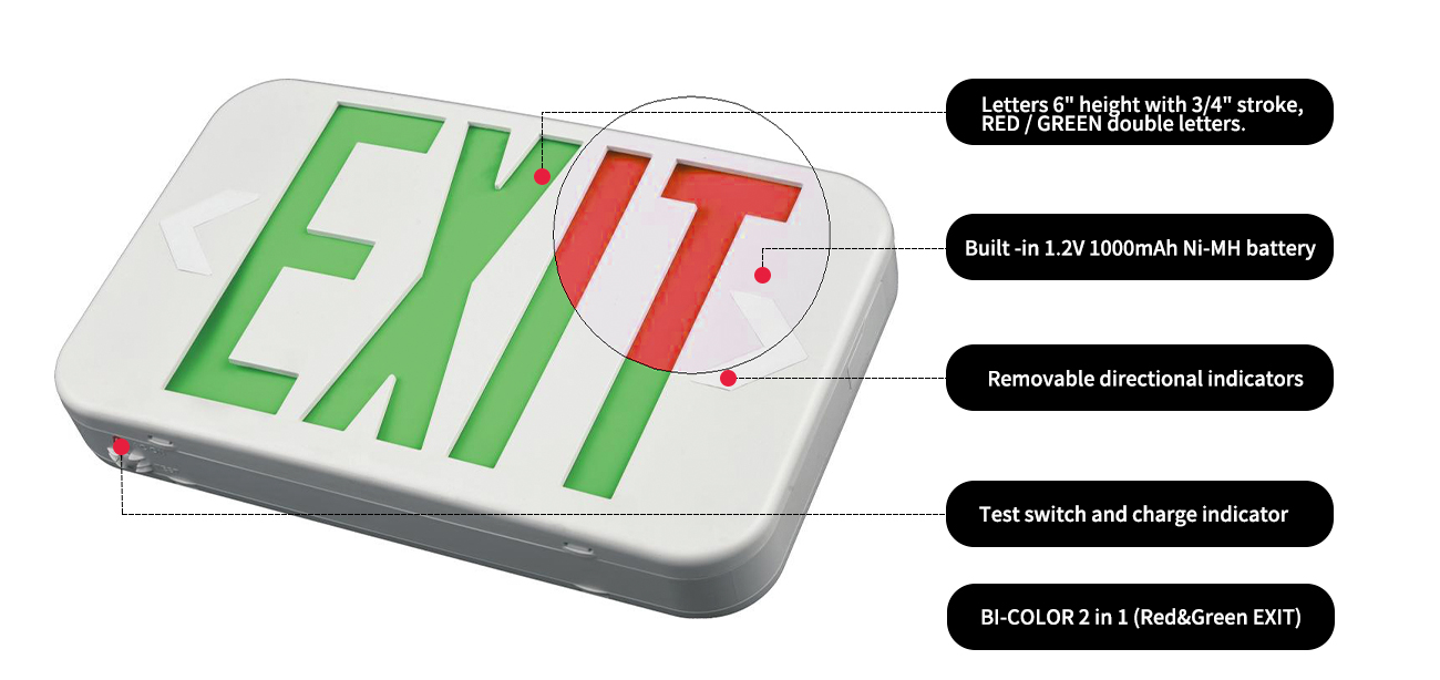 LED 헤드가있는 Bi-Color LED 콤보 비상구 사인 *주입-홀드 열가소성 ABS 하우징, UL 94V-0 불꽃 등급. *몇 분 안에 혁신적이고 쉬운 설치 ...